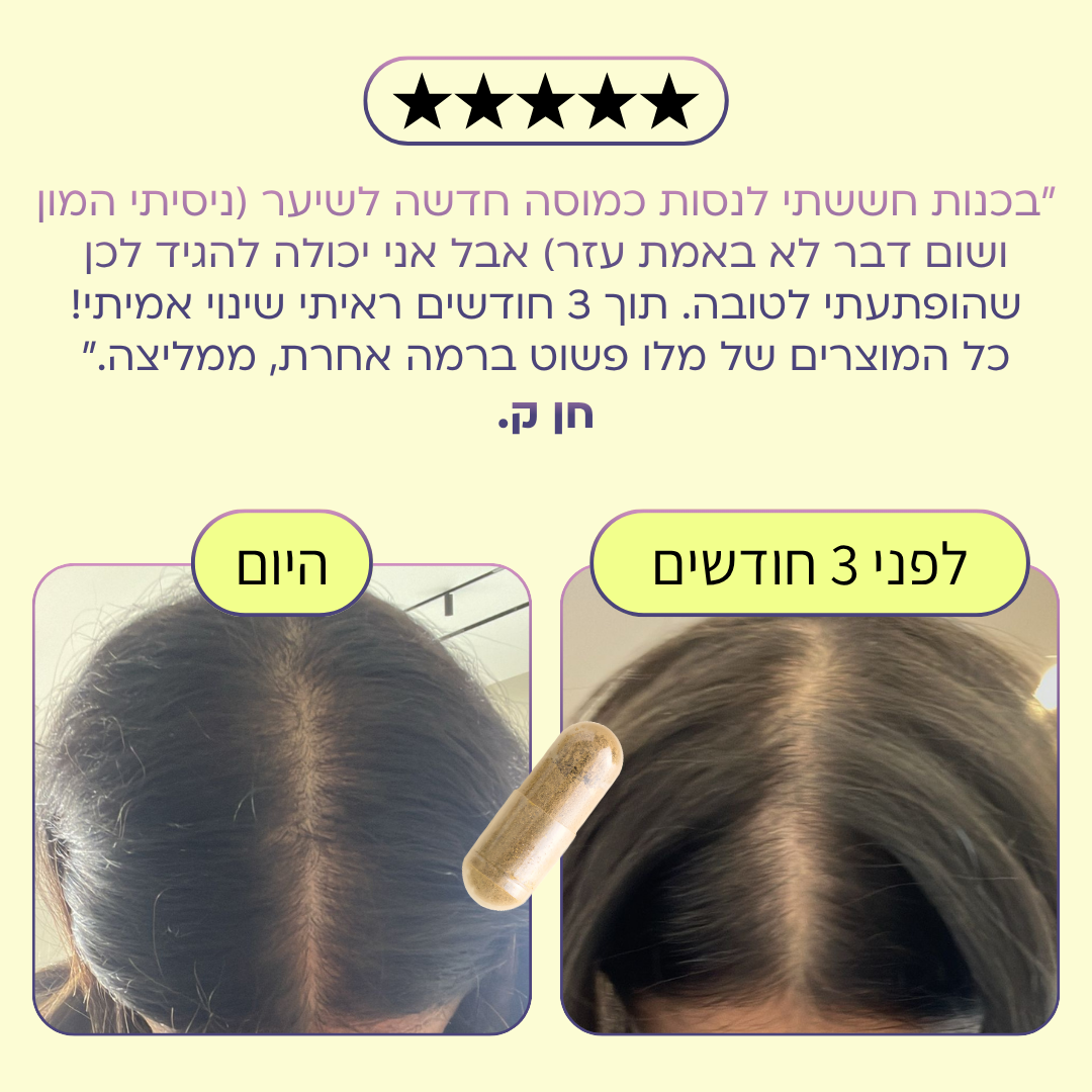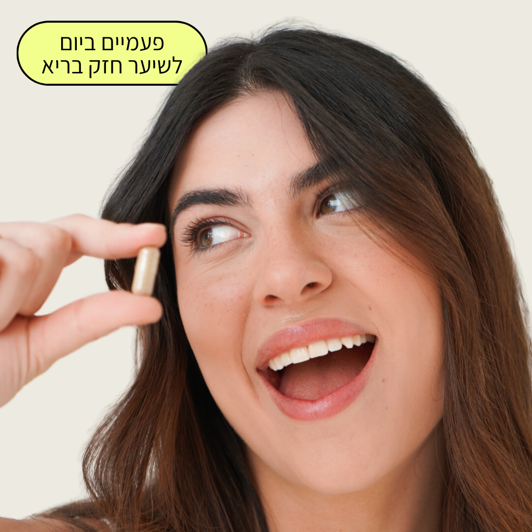 2 כמוסות ביום = שיער חזק בריא ומלא חיים